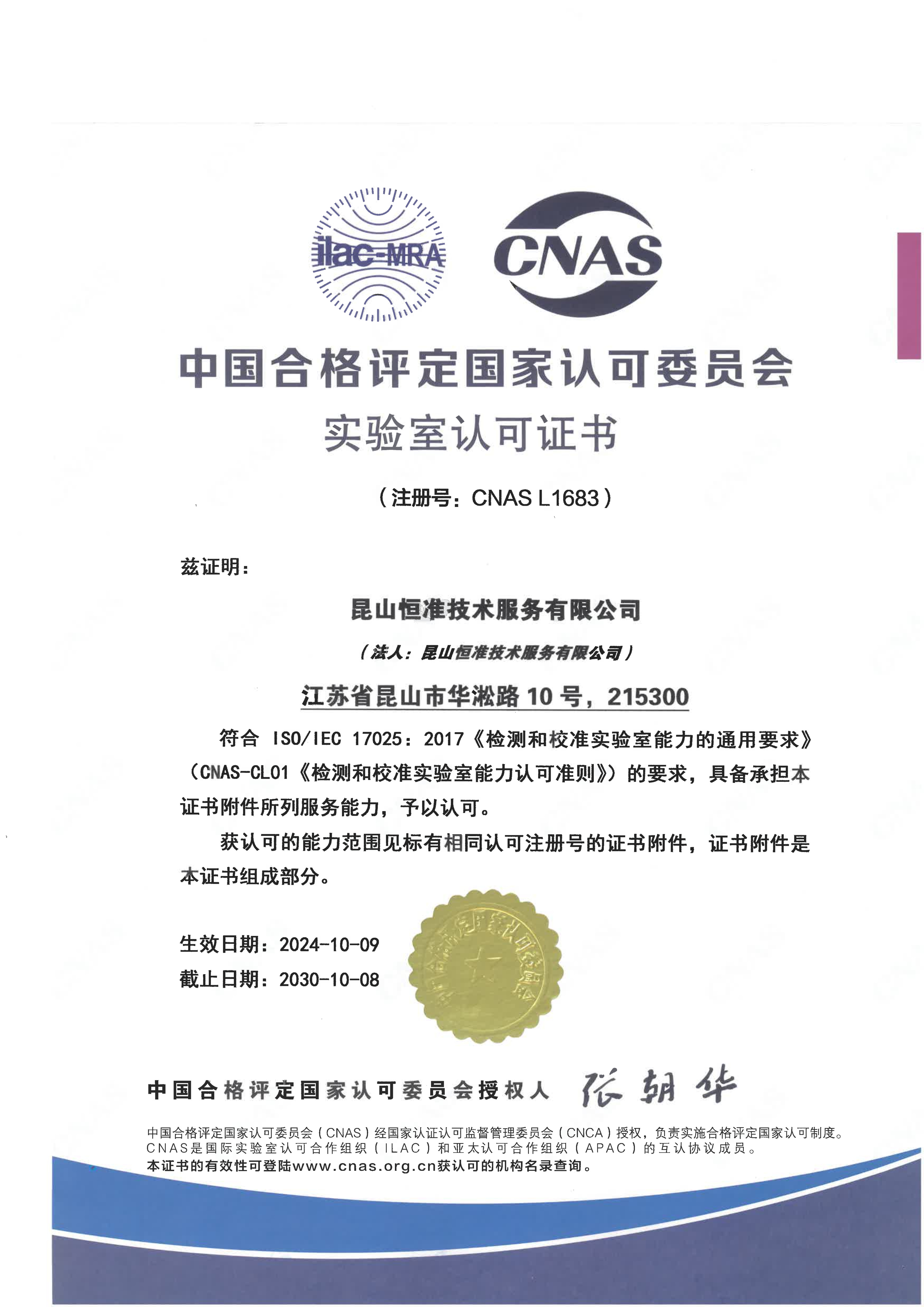 我司實驗室為中國合格評定國家認可委員會CNAS認可實驗室,校準、檢測之管理技術均符合ISO/IEC 17025的要求,并承諾持續(xù)的改善管理體系和提升客戶滿意度。